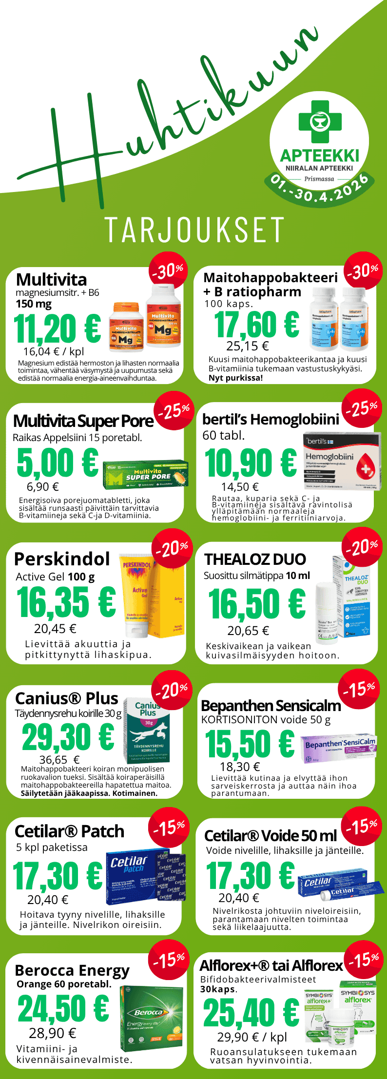 Magnesium edistää hermoston ja lihasten normaalia toimintaa, vähentää väsymystä ja uupumusta sekä edistää normaalia energia-aineenvaihduntaa.
